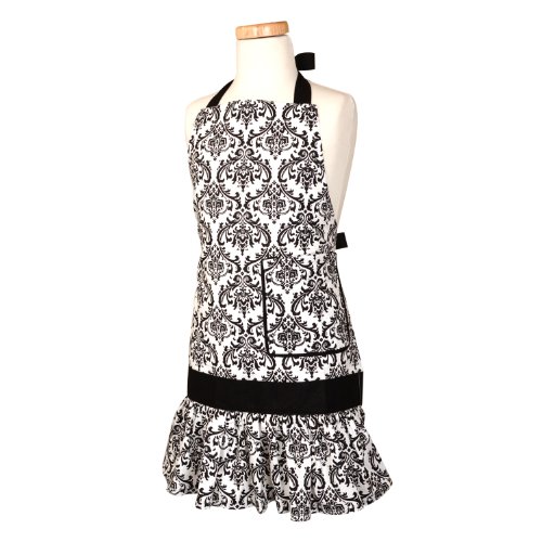 Flirty Aprons Girl's Sadie Damask Apron, Black