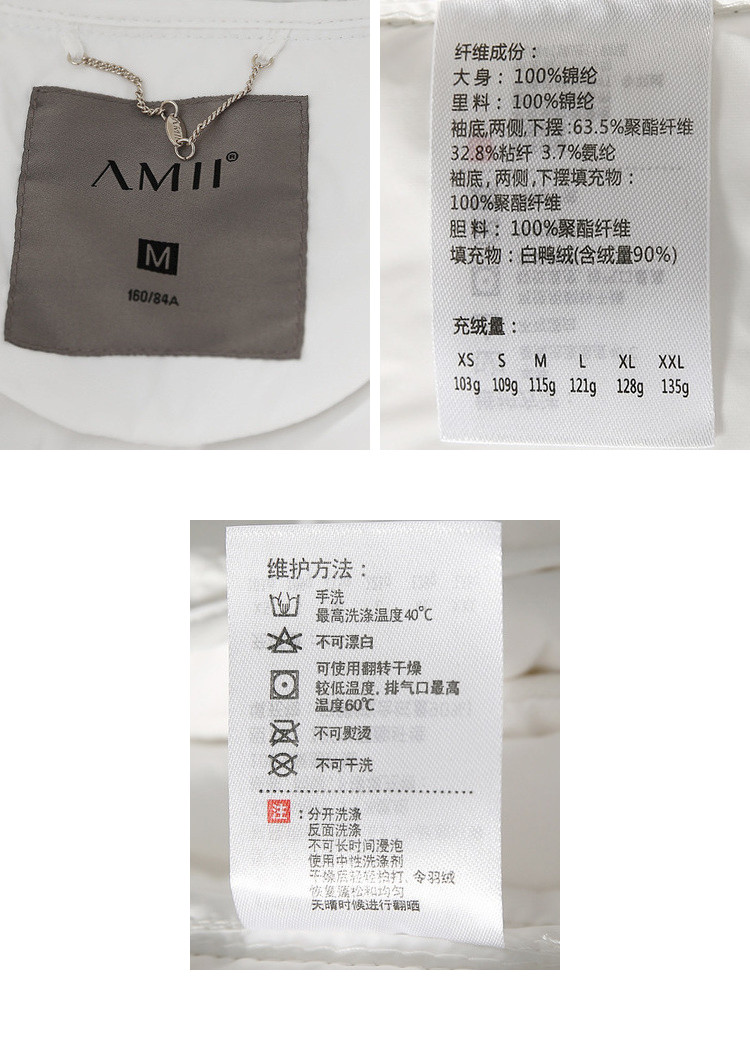 | 面料成分: | 大身:100%锦纶 里料:100%锦纶 袖底,两侧,下摆:63.5%聚酯纤维,32.8%纤维,3.7%氨纶 袖底,两侧,下摆填充物:100%聚酯纤维 胆料:100%聚酯纤维 |