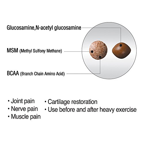 • Glucosamine (99% hydrochloride) from fresh crab shells. • Chondroitin, as suggested by "The Arthritis Cure". • MSM, an anti-inflammatory assistant to our body. • BCAA, essential amino acids to repair and manage muscle. • 5 special herbs (Devil's Claw / Cat's Claw / Extract from Willow Tree's Bark / Lemon Verbena Leaf Extract / Olive Leaf Extract) to help manage aches and pain • Umeken Glucosamine is in easy-to-swallow ball form to maintain the proper level of glucosamine. • Placed in a convenient small packet so that you can easily carry it with you. • You can take in sufficient amount of glucosamine (1.2g +) with 2 packets a day Glucosamine + Chondroitin + MSM + BCAA + Special pain reducing Herbal Formula.Feature