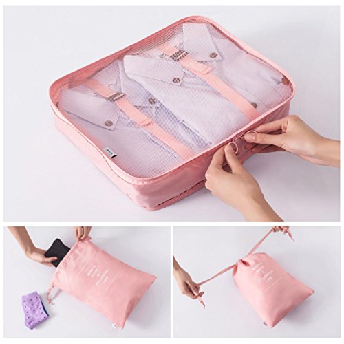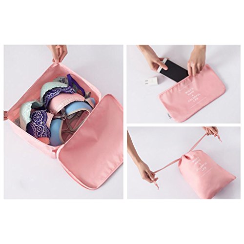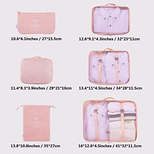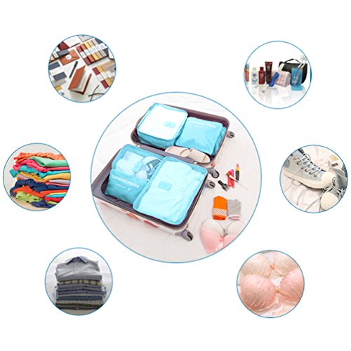 Specification: Function: travel storage bag/ organizer bag/ travel necessary organizer bag Material: (Polyester fiber) Water proof nylon, Gridding. Color:Blue, Dark Blue, Green, Pink Quantity: 1 set (6pcs). Bag Size: 36*26*12cm / 14.2*11.2*4.7inches 30*21.5*12cm / 11.8*8.5*4.7inches 20*15.5*12cm / 7.9*6.1*4.7inches 32*23cm / 12.6*9.1inches 26*19cm / 10.2*7.5inches 16.5*13cm / 6.5*5.1inches