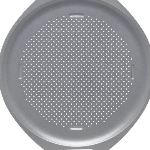 - Feature : 2-piece set includes cookie sheet and pizza crisper / Insulated carbon steel with light gray nonstick surfaces / Crisper has 2 side handles; cookie sheet has 1 rolled edge / Hand wash; oven-safe to 500 degrees F; Quality Assurance Guarantee / Crisper measures 15-1/2 inches; cookie sheet measures 14 by 16 inches