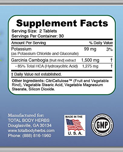 -. Feature : HIGH STRENGTH FORMULA: (2) two tablets includes 1500 mg of Garcinia Cambogia. Fewer tablets needed. / FAST ACTING TABLET - Our all natural Super GC Garcinia Cambogia with HCA is safe and effective. Imagine looking great and feeling great as you burn fat and lose weight.* / PURE GARCINIA CAMBOGIA EXTRACT with 85% HCA - The Garcinia Cambogia HCA works to suppress your appetite and assists with stopping the fat-making process in your body. * / 100% SAFE AND NATURAL WITH NO SIDE EFFECTS - No headaches. No jitters. No nausea. Our Super GC is very safe and effective.* / Great for Weight Loss*: You can order risk free. This product is made in the U.S.A.