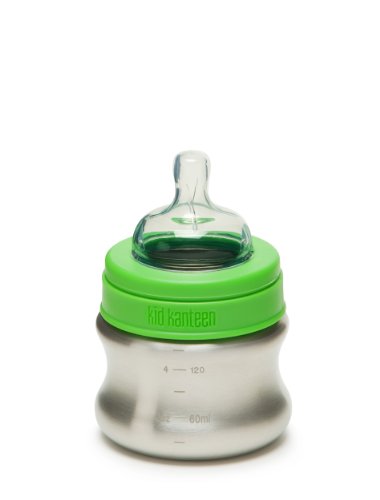 -. Binding : Baby Product -. Brand : Klean Kanteen -. Feature : Baby bottle is made from high quality, 18/8 food grade stainless steel is free of BPA, phthalates and other toxins / The contoured hourglass shape is designed for small hands with a wide mouth for easy cleaning, pouring and filling / Medical-grade silicone nipples feature a double-venting system to reduce colic and feature a wide base and long adjusting nipple for proper latching, correct oral development and healthy teeth / The 9 ounce bottle includes medium-flow nipple and the 5 ounce bottles includes slow flow nipple which promotes natural paced and relaxed feedings. / Bottle shape an threads are compatible with all Klean Kanteen Wide Caps and is dishwasher safe -. Label : Klean Kanteen -. Manufacturer : Klean Kanteen -. MPN : K05BABABY-BS -. NumberOfItems : 1 -. PackageQuantity : 1 -. PartNumber : K05BABABY-BS -. ProductGroup : Baby Product -. ProductTypeName : BABY_PRODUCT -. Publisher : Klean Kanteen -. Studio : Klean Kanteen -. Title : Klean Kanteen - Kid Kanteen Stainless Steel Baby Bottle