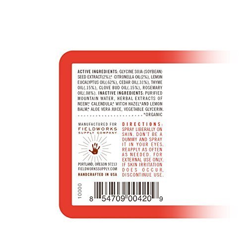 -. Brand : Fieldworks -. Feature : EXTRACTS of NEEM - Nature's Potent Bug Repellent, Blended With Other Effective Repelling Essential Oils and Botanicals That Mosquitos, Gnats, Flies, Chiggers and All The Other Irritating and Potentially Dangerous Bugs Hate. EXTRA BENEFIT - It Is Good For Your Skin, Even Sensitive Types. / WATER BASED SPRAY - Specially Formulated With A Natural Fixative To Keep The Ingredients On Your Skin and Working Longer and In A High Enough Concentration That It Actually Works! Not Oily Or Sticky On Your Skin / ALUMINUM - Puncture and Crush-Proof, Non-Aerosol Container. Won't Leak In Your Pack - Won't Harm Your Gear. Pleasant, Fresh Scent / TOTALLY SAFE INGREDIENTS - No Matter Who You Are. Don't Spray Your Kids and Pets In Toxic Chemicals To Keep Them From Getting Bitten During Bug Season. All Of Our Ingredients Are Safe and Eco-Friendly. Use With Confidence. / MADE IN USA - In Small Batches To Ensure Quality and Effectiveness. Use Your Hands This Summer To Throw The Ball For Your Dog, Cast A Lure or Flip Burgers On The Grill, Instead Of Swatting Mosquitos -. IsAdultProduct : 0 -. IsAutographed : 0 -. IsMemorabilia : 0 -. Label : Fieldworks -. Manufacturer : Fieldworks -. MPN : 3000 -. PackageQuantity : 1 -. PartNumber : 3000 -. ProductGroup : Sports -. ProductTypeName : OUTDOOR_RECREATION_PRODUCT -. Publisher : Fieldworks -. Studio : Fieldworks -. Title : Mosquito Defense DEET-Free Spray With Neem & Natural Essential Oils Repel Mosquitos and Bugs. Organic-Safe-Guaranteed, Shoo Fly Brand