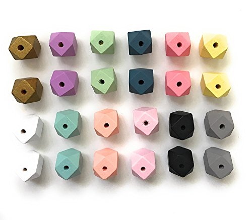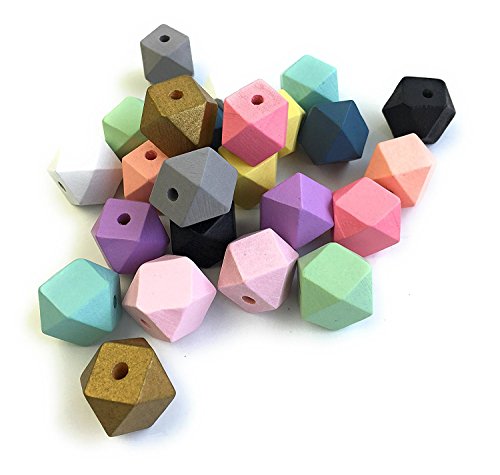 24pc pastel faceted geometric hexagon wooden beads 20mm with 4mm hole Painted for DIY crafting and jewelry making