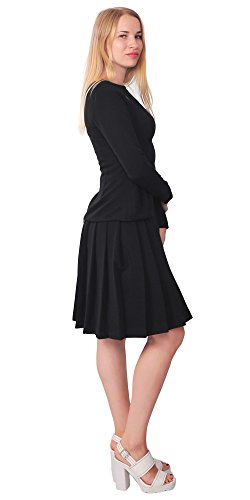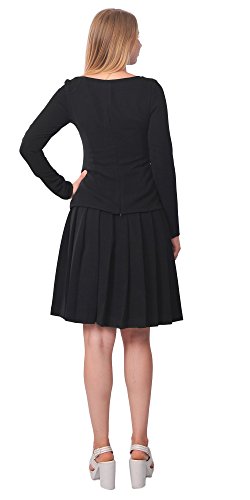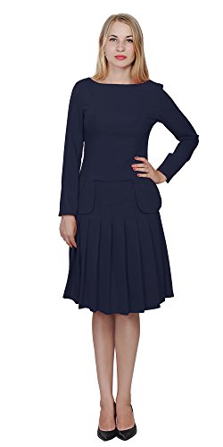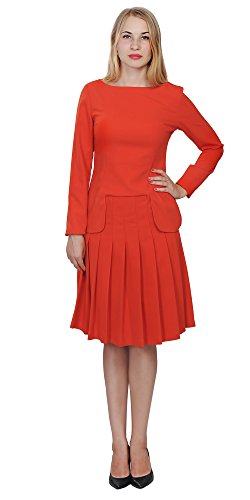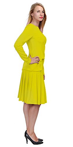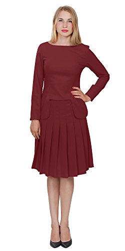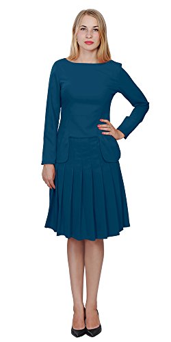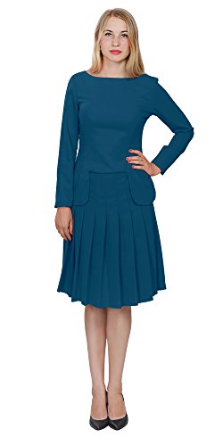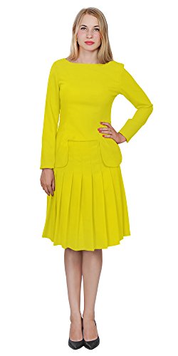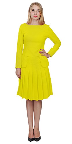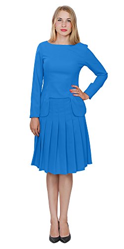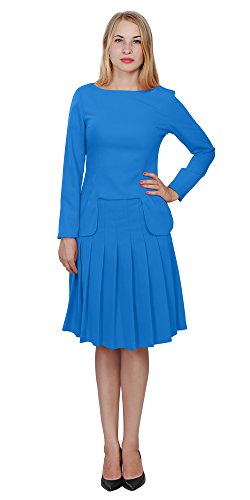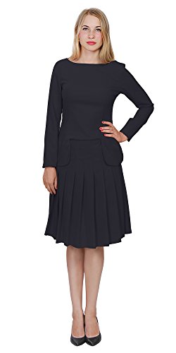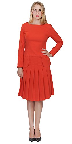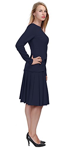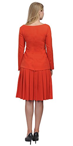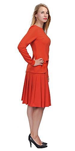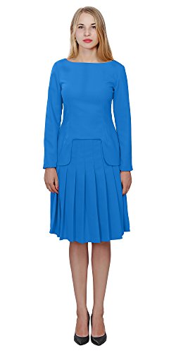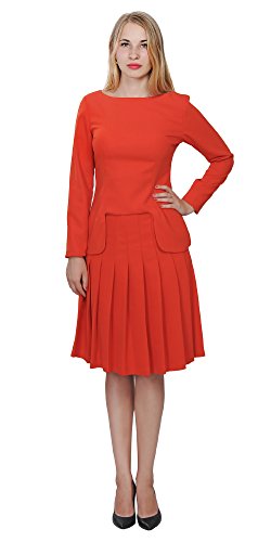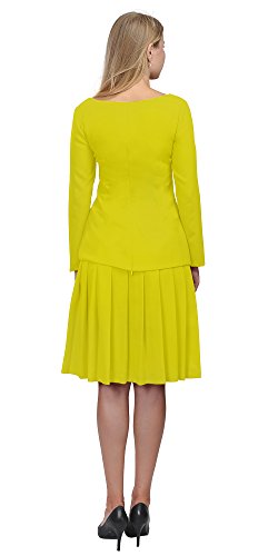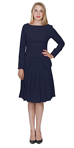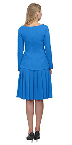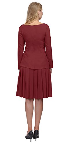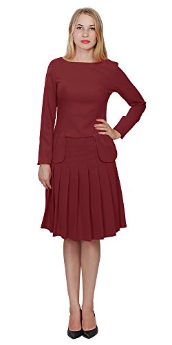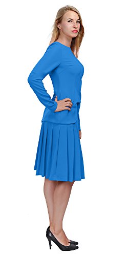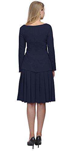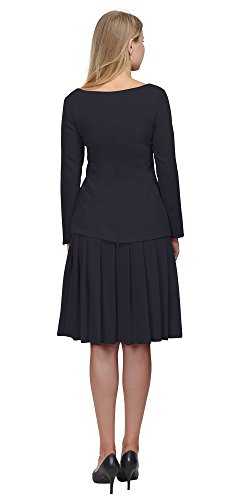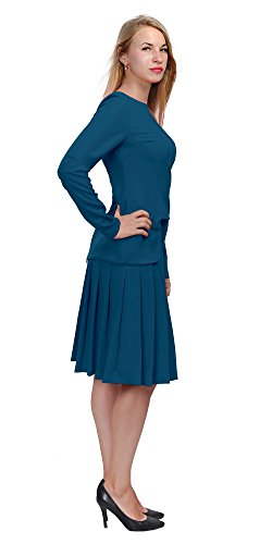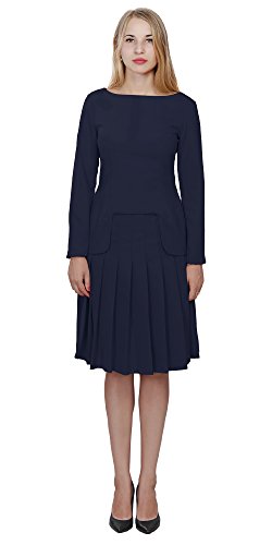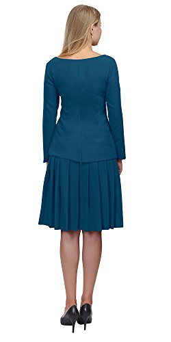 A set of skirt suit suitable for business or wear to work, inspired by duchess suit set, made of high quality thick polyester fabric. It features long sleeves, boat neck, flared skirt, hi low top hemline. Photos say it all. Top's Length: 25" (63.5cm); Skirt Length: 23" (58 cm) Regular fit, long sleeves, boat neck, flared skirt, hi low top hemline, knee length. Machine washable. Materials: high quality thick polyester fabric
