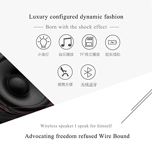 -. Feature : LED Lamp bluetooth speaker / This is an AWESOME product, combined with MUSIC and LIGHT elements ! Multifuctional, smart, low-key and simple, that's it ! A perfect gift / decoration for yourself, your family or friends ! / JL2.1 Bluetooth version, it can be a wireless speaker, a table lamp, or a music player, with this well-designed, multifunctional device, makes it a ideal gift to give for Birthday, Thanksgiving day, Christmas etc.Good for a childs room as a night light and play light music / Long working time. 14 hours working time (Affected by Volume / Light Brightness) after fully charging for about 2 hours. Just enjoy the warm light and music, while you are READING, doing YOGA, romantic CANDLELIGHT DINNER or CAMPING indoor or outdoor. / Unique Design make it an amazing gift for holiday, birthday, wedding and anniversary.