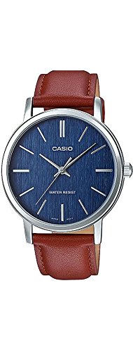 The by Casio is a timeless piece for those who value the little luxuries in life This watch is handcrafted with a sleek leather band and stainless steel case These durable materials guarantee longevity of the product and a proud owner in the years to come The brown band blue dial and silver hands contribute to the overall appearance of the watch by adding a sophisticated aspect This piece also features a sturdy mineral crystal to protect the dial and a Japanese quartz movement to ensure you remain punctual in your daily life In addition this product is water-resistant to 30 meters 100 feet 3 atm which is ideal for those days where an accident may occur The rich details imperishable components and luxurious quality of the Casio watch make it a perfect addition to any collectionFeature