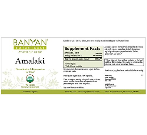 Ayurvedic AntioxidantAs one of the three ingredients in triphala, amalaki (Embilica officinalis) is a potent rejuvenative that nourishes the tissues and gently removes toxins. It is generally taken in place of triphala by those with excess heat in the digestive tract. Amalaki's cooling action removes excess heat from the GI tract, supporting a healthy stomach lining and the proper function of digestive acids. It also cleanses the colon, eliminating excess toxins and heat while supporting healthy bowel movements. Amalaki is a highly concentrated source of antioxidants and is deeply nourishing to the body tissues. It promotes healthy eyes, bones, blood, teeth, hair, and nails, while supporting the proper function of the liver, spleen, pancreas, heart, and lungs.*
