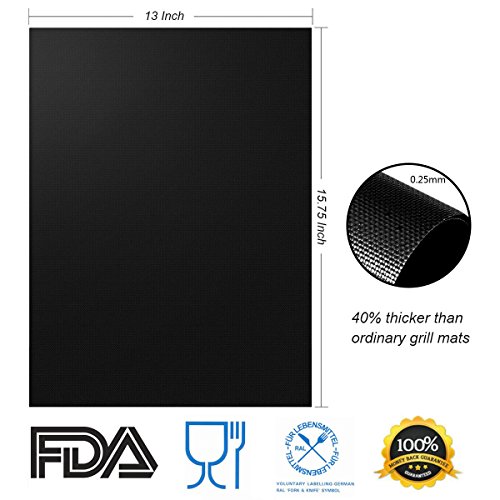 - PERFECT - Our grill mat is thick enough to leave grill marks and flavor intact, and to provide ultimate heat resistance and durability. With our Lifetime Replacement Guarantee, 2 mats is all you'll ever need. NEVER buy another grill mat again!
