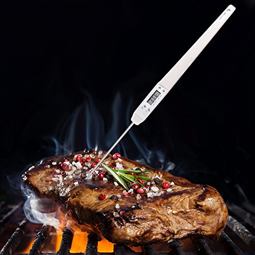 - FAST & ACCURATE: The cooking thermometer with LCD display shows accurate temperature (+/- 0.1 degree F/C) within 10 secs, with the operation rage of -50°C(-58°F) to 300°C (572°F)