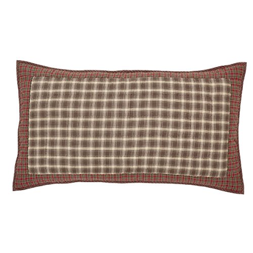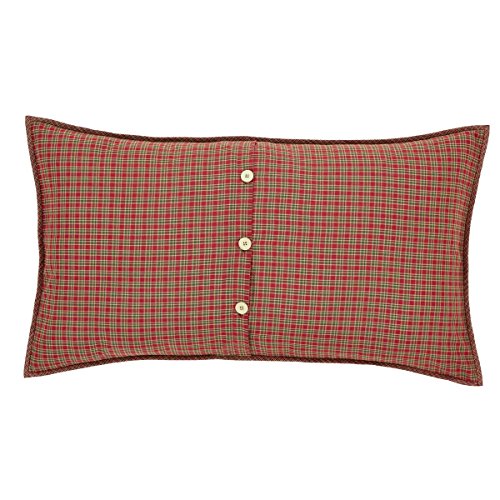 - Straight edge with .5'' crimson and biscotti micro plaid binding