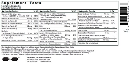 A comprehensive multiple without iron and iodine.Since 1984, Thorne has set the standard for the exceptional formulation and quality manufacturing of nutritional supplements. Thorne delivers premium, science-based products, a health diagnostics technology platform, and the latest in medical education. With more than 350 products, Thorne is the most dispensed brand by 30-40 year old health-care practitioners. Thorne is dedicated to improving the health of our community as well as increasing the knowledge of nutritional health and wellness. Since 2012, Thorne has partnered with educational institutes and local charities to donate more than $1M in products and profits.