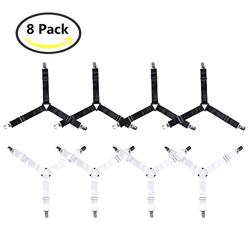 Blosion 8pcs/Crisscross 2 Way Adjustable Bed Sheet Fasteners Suspenders with Heavy Duty Grippers Clips /Black And White (black)