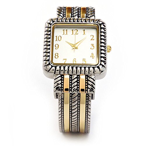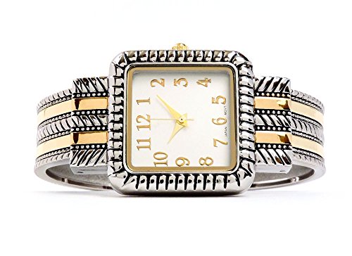 2Tone Western Style Decorated Square Face Women's Bangle Cuff Watch