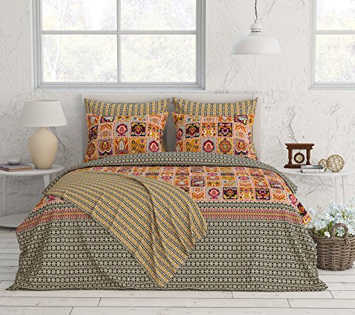 Squares & diamond mosaic, 100Percent combed Cotton blend, 55Percent Cotton and 45Percent polyester, machine washable, wash dark color separately do not bleach