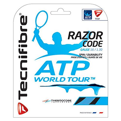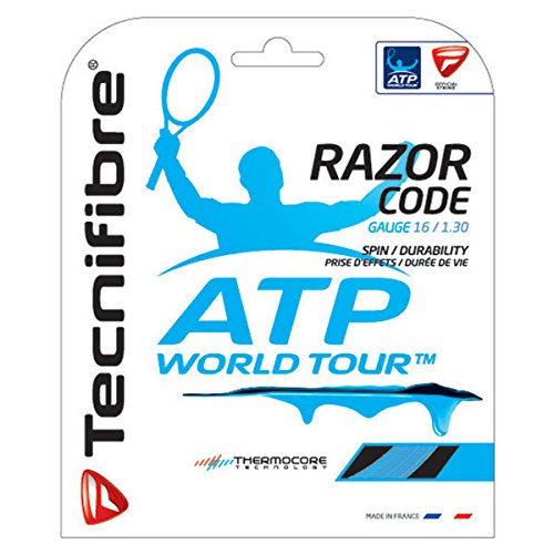 Studio : Tecnifibre Publisher : Tecnifibre Binding : Misc. Product Description Poly string technology is taken to a new level with the introduction of Tecnifibre ATP Razor Code 13016g Blue Razor Code is the string of choice of ATP Top Ten player Janko Tipsarevic and brings a new feel to monofilament strings Thermocore Technology is used in the manufacturing process combining polyurethane with the base polyester material and utilizing varying temperatures during the different stages of construction allowing the matrix structure of the string to soften Thanks to Thermocore Technology ATP Razor Code plays softer than traditional poly strings has more power and absorbs shock and vibration providing muchimproved dynamic playability 16gauge 130mm diameter increases durability over thinnergauge versionsTecnifibre ATP Razor Code is the true next generation of poly string technology and its benefits are not just for tourlevel players but for all hardhitting topspin players looking for more comfort power and durabilityConstruction Monfilament copolymer with Thermogut TechnologyColor BlueGauge 130mm16 0