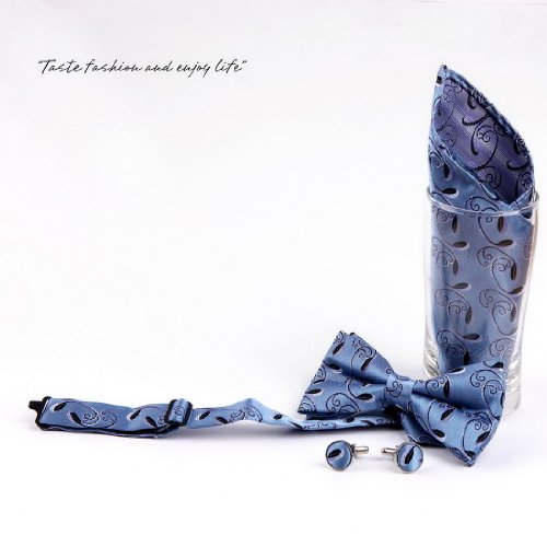 With exactly the same color and pattern cufflinks and hankchief, this bowtie set makes the perfect gift, and would certainly look stunning on any wedding daygroom.