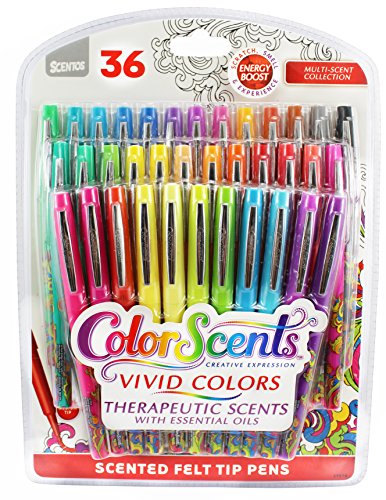 ColorScents Scented Felt Tip Pens 36 Count - Energy Boost Theraputic Essential Oil Fine Tip Marker Pens - Writing Markers