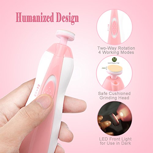 Baby Nail Trimmer, Fansidi Safe Baby Nail File - Electric Baby Nail Clipper with 6 Interchangeable Grinding Head, LED Front Light, Portable Drawstring Bag -...