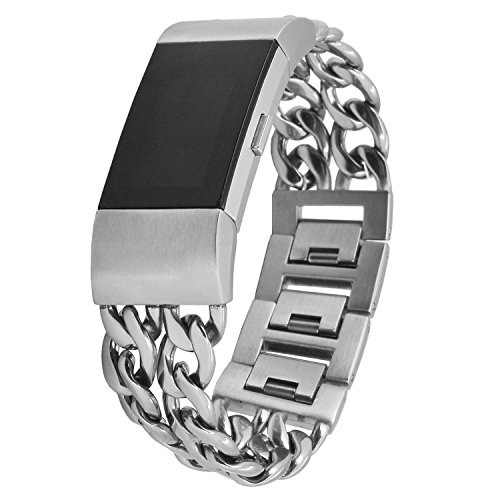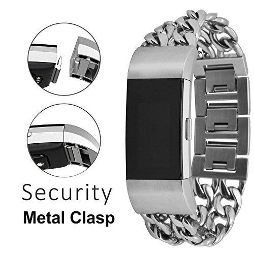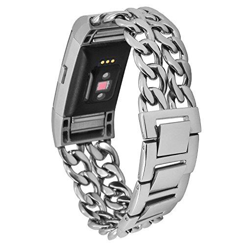 Fitbit Charge 2 Band, Aokay Stainless Steel Metal Cowboy Style Chain Bracelet Watch Band for Fitbit Charge 2 Heart Rate