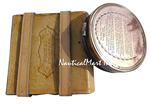 'Robert Frost Poem'' Engraved Brass Compass with Embossed Needle & with Leather Case