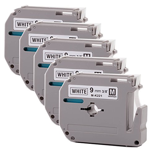 Wangsale Replacemen Label Tape Compatible with Brother MK221 M-k221 P-Touch Tape 9mm x 8m (5 PK Black on White)