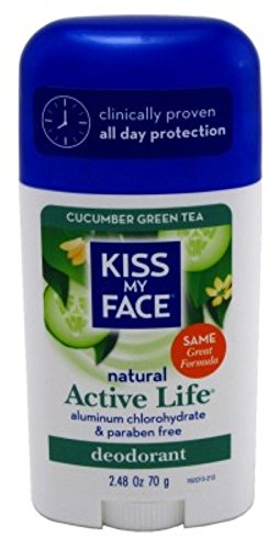 -. Binding : Health and Beauty -. Brand : Kiss My Face -. EAN : 0787734523721 -. Feature : Natural / Paraben free / Phthalate free / Cruelty free -. Label : Kiss My Face -. Manufacturer : Kiss My Face -. MPN : 1900248 -. PackageQuantity : 3 -. PartNumber : 1900248 -. ProductGroup : Beauty -. ProductTypeName : HEALTH_PERSONAL_CARE -. Publisher : Kiss My Face -. Size : 2.48 oz (Pack of 3) -. Studio : Kiss My Face -. Title : Kiss My Face Active Life Stick Deodorant, Cucumber Green Tea, 2.48 Ounce (3 Pack) -. UPC : 787734526623