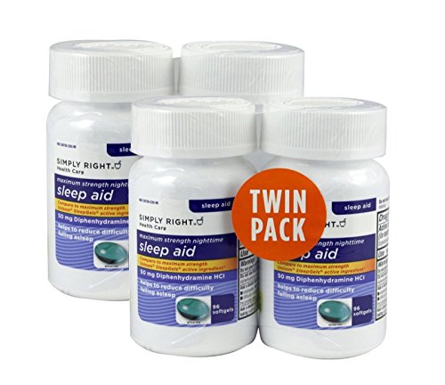 -. Binding : Health and Beauty -. Brand : Simply Right -. Feature : Simply Right Sleep Aid 50mg Diphenhydramine (384 Count) -. IsAdultProduct : 0 -. Label : Simply Right -. Manufacturer : Simply Right -. PackageQuantity : 1 -. ProductGroup : Health and Beauty -. ProductTypeName : HEALTH_PERSONAL_CARE -. Publisher : Simply Right -. Studio : Simply Right -. Title : Simply Right Sleep Aid 50mg Diphenhydramine (384 Count)