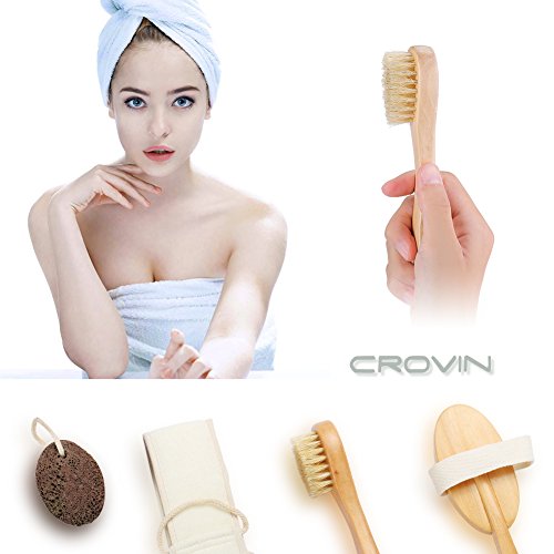 -. Title : Dry Brushing Body Brush - Natural Boar Bristle Dry Brush Set for Body and Face Brushing - Ski Brushing - Loofah Back Scrubber - Bath and Shower Gloves - Pumice Stone Foot Scrub - Men and Women