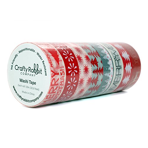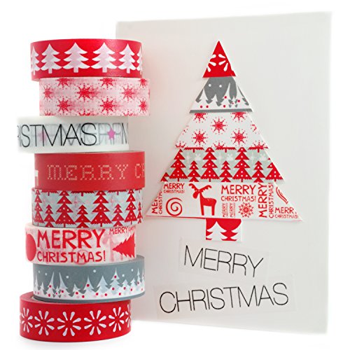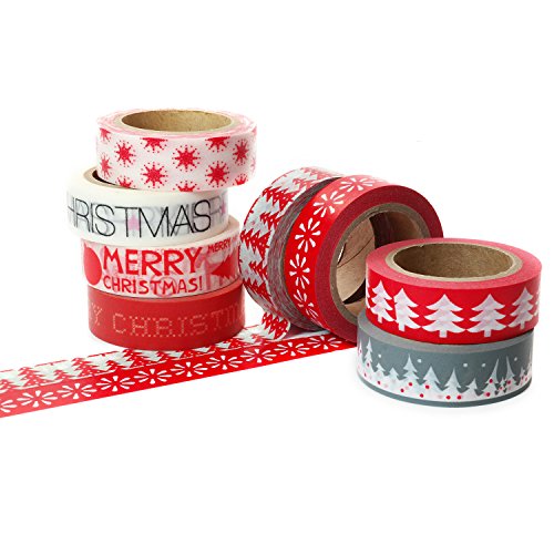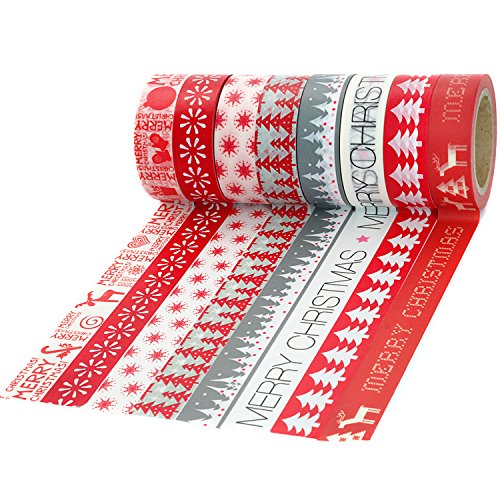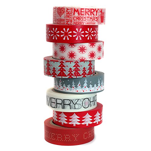 Crafty Rabbit Christmas Washi Tape - Set of 8 Rolls - 262 Feet Total - Red, Grey, White