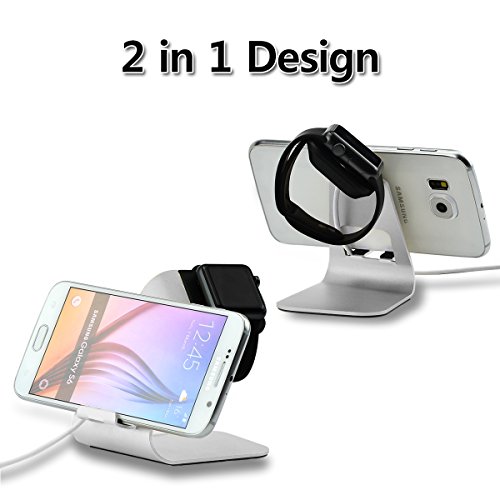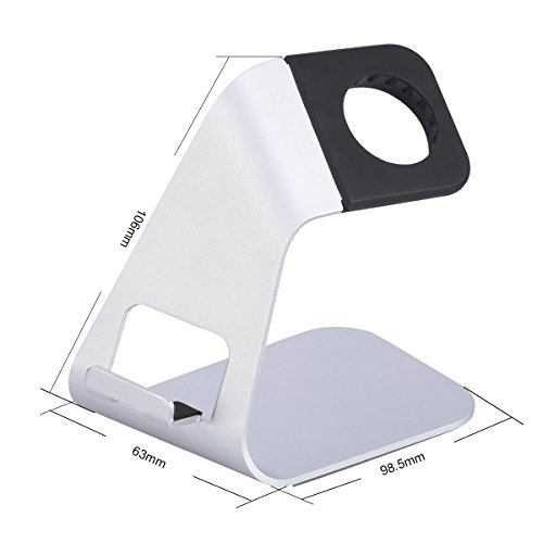 Daite Aluminum Apple Watch and iPhone Charging Stand Cradle Holder Mount Anti-slip 45° View Angle (silver)