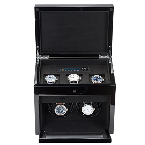-. Binding : Watch -. Brand : Paul Design -. Color : Black -. Department : Unisex-adult -. EAN : 0743031889656 -. Feature : A luxurious double watch winder for people with fine taste in luxury. Features black and tan wood design finish. / Includes automatic LED lights and additional storage for 3 watches. Separate control button on side panel for LED light on/off function. / LCD control panel with customizable winding programs to cover all the automatic watches (528 to 1824 TPD - turns per day). / Extremely quite winder with watch holder designed to fit all sizes of watches. / 2 year manufacturer warranty. -. Label : Boda -. Manufacturer : Boda -. Model : 2+3 Winder -. MPN : TA89656 -. PackageQuantity : 1 -. PartNumber : TA89656 -. ProductGroup : Watch -. ProductTypeName : WATCH -. Publisher : Boda -. Studio : Boda -. Title : Double Watch Winder For Men’s Automatic Watches, Plus Three Watch Box Storage -. UPC : 743031889656