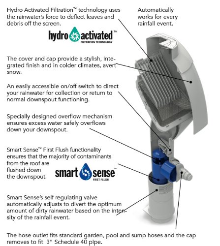 Smart Sense™ First Flush functionality ensures the majority of contaminants from the roof are flushed down the downspout