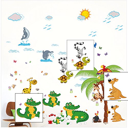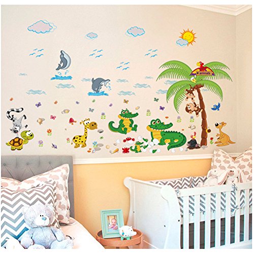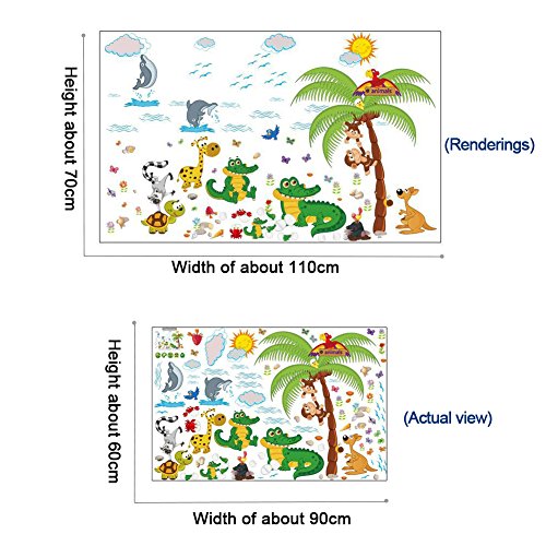 Kids Wall Decals Stickers,Coconut Tree Jungle Animal Cartoon Wall Sticker Removable Waterproof Wall Decals for Kids Room Decor Nursery Decal Sticker Wallpaper
