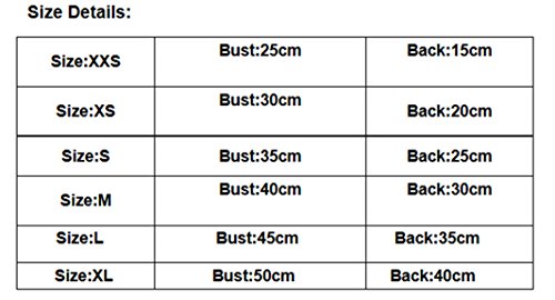 Product Description▶Size Details: ▶Size:XXS--Bust:25cm--Back:15cm ▶Size:XS--Bust:30cm--Back:20cm ▶Size:S--Bust:35cm--Back:25cm ▶Size:M--Bust:40cm--Back:30cm ▶Size:L--Bust:45cm--Back:35cm ▶Size:XL--Bust:50cm--Back:40cm0