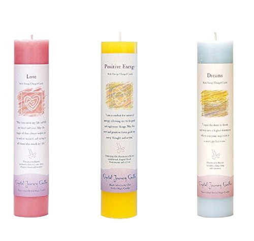 Crystal Journey Reiki Charged Herbal Magic Pillar Candle Bundle (Love, Positive Energy, Dreams)