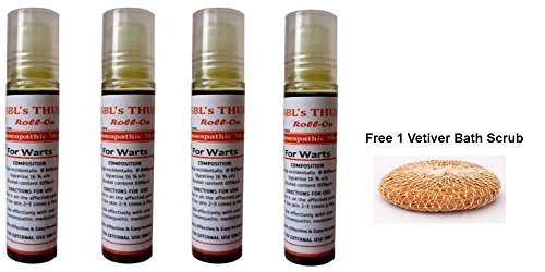 SBL's Thuja Roll On for Warts 10ml (Pack of 4) Free 1 Vetiver Bath Scrub