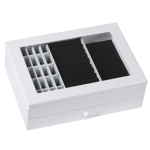 -. Feature : Solid wood storage chest with clear glass view top and convenient drawer / Perfect for storing jewelry and accessories of various sizes / Reaarangeable dividers to meet your storage needs / Measures 11 3/4" x 8 1/2" x 3 3/4" / Official Ikee Design product