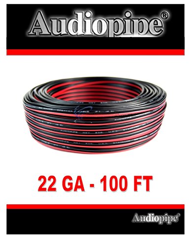-. Binding : Electronics -. Brand : Audiopipe -. Color : Red and Black -. EAN : 0784644619391 -. Feature : Audiopipe 2 Conductor Red/Black Speaker Wire 22 Gauge - 100ft Wire / THIS IS NOT AWG AMERICAN WIRE GAUGE / Stranded 2 Conductor Copper Clad Aluminum / Use this with any 12 Volt or home project / Rated 6 to 80 Volts -. Label : Audiopipe -. Manufacturer : Audiopipe -. Model : LYSB00NT2ROUA-ELECTRNCS -. MPN : Ground 12 Volt Hook Up Lead LED -. PackageQuantity : 100 -. PartNumber : Ground 12 Volt Hook Up Lead LED -. ProductGroup : CE -. ProductTypeName : CABLE_OR_ADAPTER -. Publisher : Audiopipe -. Studio : Audiopipe -. Title : Audiopipe 100' Feet 22 Gauge Red Black 2 Speaker Wire Zip Cable Copper Clad -. UPC : 784644619391