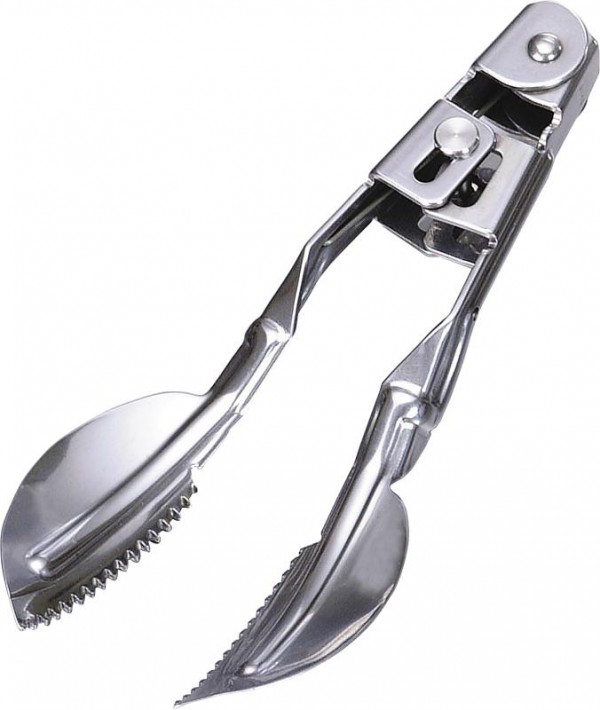 中アジ1匹30~40秒、豆アジ1匹10秒で3枚おろしにできる優れもの魚の身だけをすくい取るから内臓を出さずにさばけますいかの皮はぎにもオススメです サイズ 155mm 個装サイズ:17×10×5cm 重量 80g 個装重量:150g 素材・材質 ステンレス鋼(SUS420J2) 製造国 日本 3枚おろしも一発簡単 【使用上の注意】 最初にご使用の時は中性洗剤で洗ってからご使用ください 安全設計になっておりますが、取扱いには充分ご注意ください ご使用後はよく洗って充分に水気を拭き取り、ストッパーをかけて 幼児などの手の届かない所に保管してください 【上手なアジのおろし方】 1.魚をキッチンペーパーなどの上に置き、頭を押さえながら、えらの下部から 押しつけるようにして皮をはさみ、ゆっくり尾の方へ引っ張って皮をはがします 皮が切れたらその部分からまた挟んで皮を剥がしていきます 2.頭を押さえながら、えらのすぐ下部にスプーンの部分を差し入れ、 腹の部分を避けながら骨に沿ってこそげるように身をはがしていきます 3.中骨が気になる場合は、はさみ部分ではさむと簡単に中骨を 取り除くことができます 中アジ1匹30