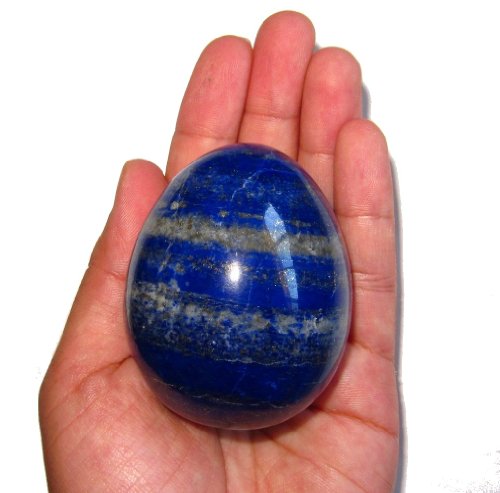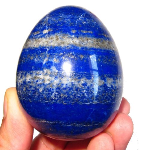 This is a beautiful high quality Lapis Lazuli egg. Your egg is a brilliant blue color, with glittering golden pyrite. It is a fine authentic piece with powerful energy stone from exotic Afghanistan. There are some naturally occurring lines and divots on this shiny polished surface. Receive this exact one pictured when you order from Satin Crystals!