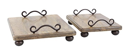 Deco 79 45700 Mango Wood and Iron Footed Trays (Set of 2), Brown