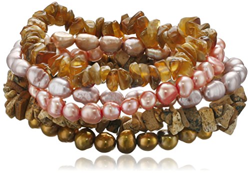 -. Title : Autumn Leaf Multi-Color Dyed Freshwater Cultured Pearl and Gemstone Chips 5 Piece Stretch Bracelet Set, 7.5"