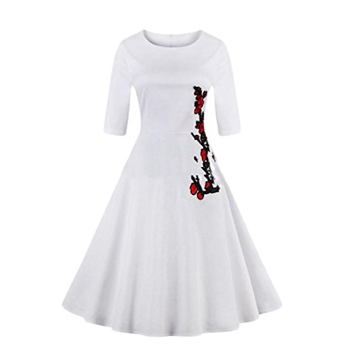 -. Title : Nicellyer 女性のピュアカラーウエストレトロなカクテルパーティードレス刺繍パフ