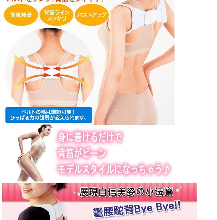 6, if back pain, back or body pain do not use.Material: The body of polyester, part of the devil felt synthetic leather, simple, comfortable design, adjustable strength (elastic) level, always remind myself not to bend over the hump!Be a graceful beauty when standing or walking!