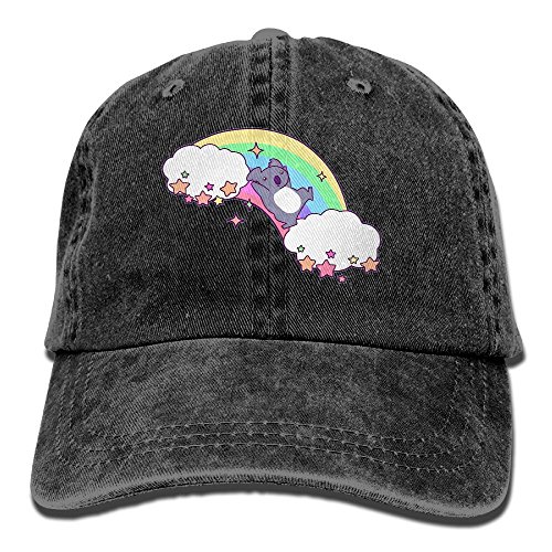(Badoufa)/Accessories/Hats/DIRECT FROM USA/Badoufa Rainbow Koala Unisex Washed Baseball Cap Adjustable Cowboy Cotton Ball Hat Black