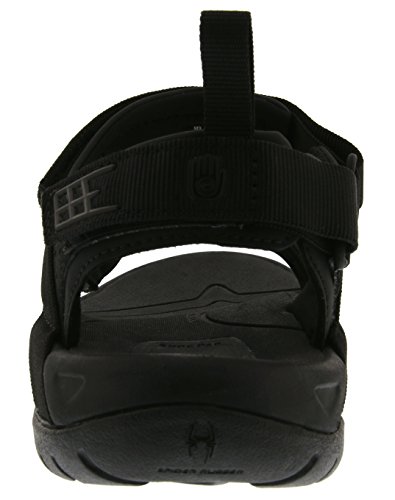 Open-toe sport sandal featuring three adjustable hook-and-loop straps and rear pull-on loop