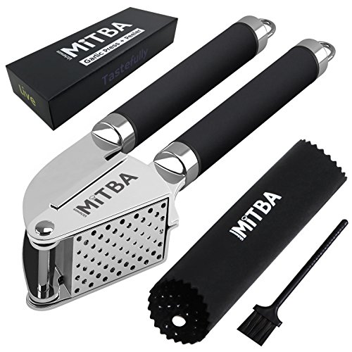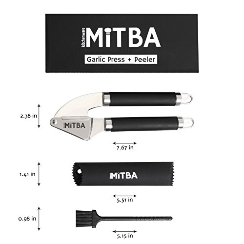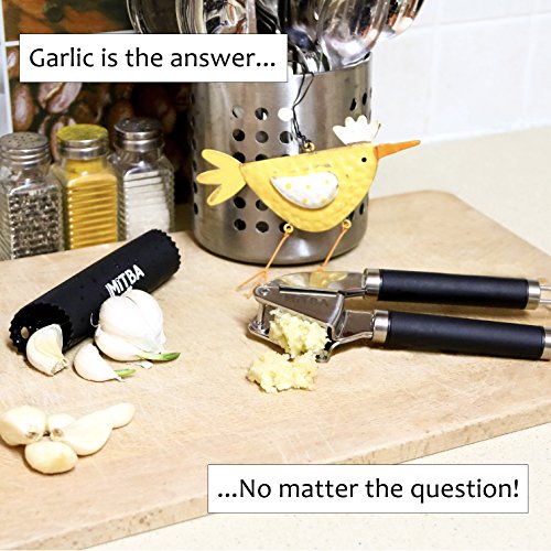 Garlic Press – Best Professional Stainless Steel Gadget By MiTBA. User-Friendly, Easy To Clean And Highly Durable. Silicone Tube Peeler + Cleaning Brush Included. Show The Garlic Who's The Boss!