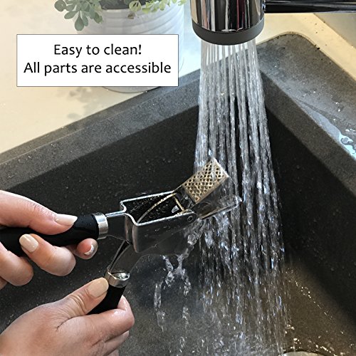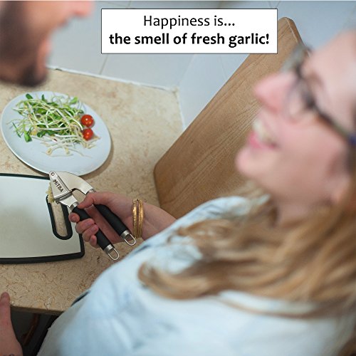 - LOOK FORWARD TO COOKING MORE WITH FRESH GARLIC! → When crushing garlic becomes so effortless, you get excited to do it over and over. The large non-slip handles of your new garlic presser will make squeezing easier than ever! This user-friendly and effective garlic and ginger mincer is designed for maximization so you'll never waste edible parts, and you have perfectly minced cloves within a few seconds.